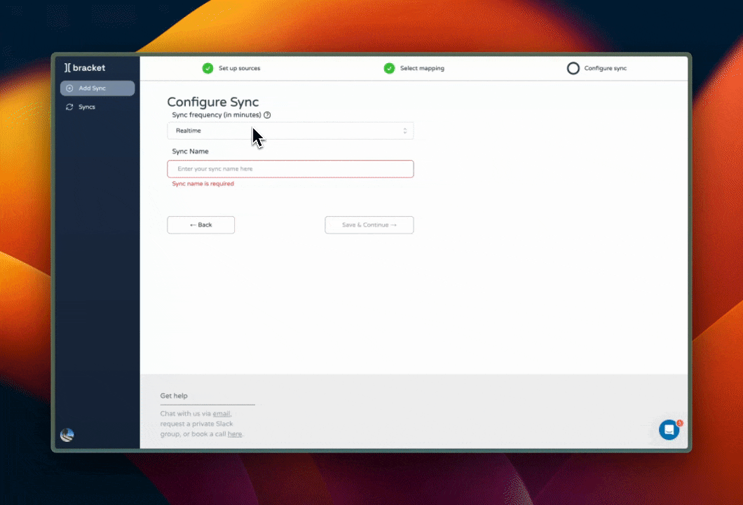 The prerequisites for a successful sync are:- Both data sources are set up (i.e., Bracket does not host on your behalf)